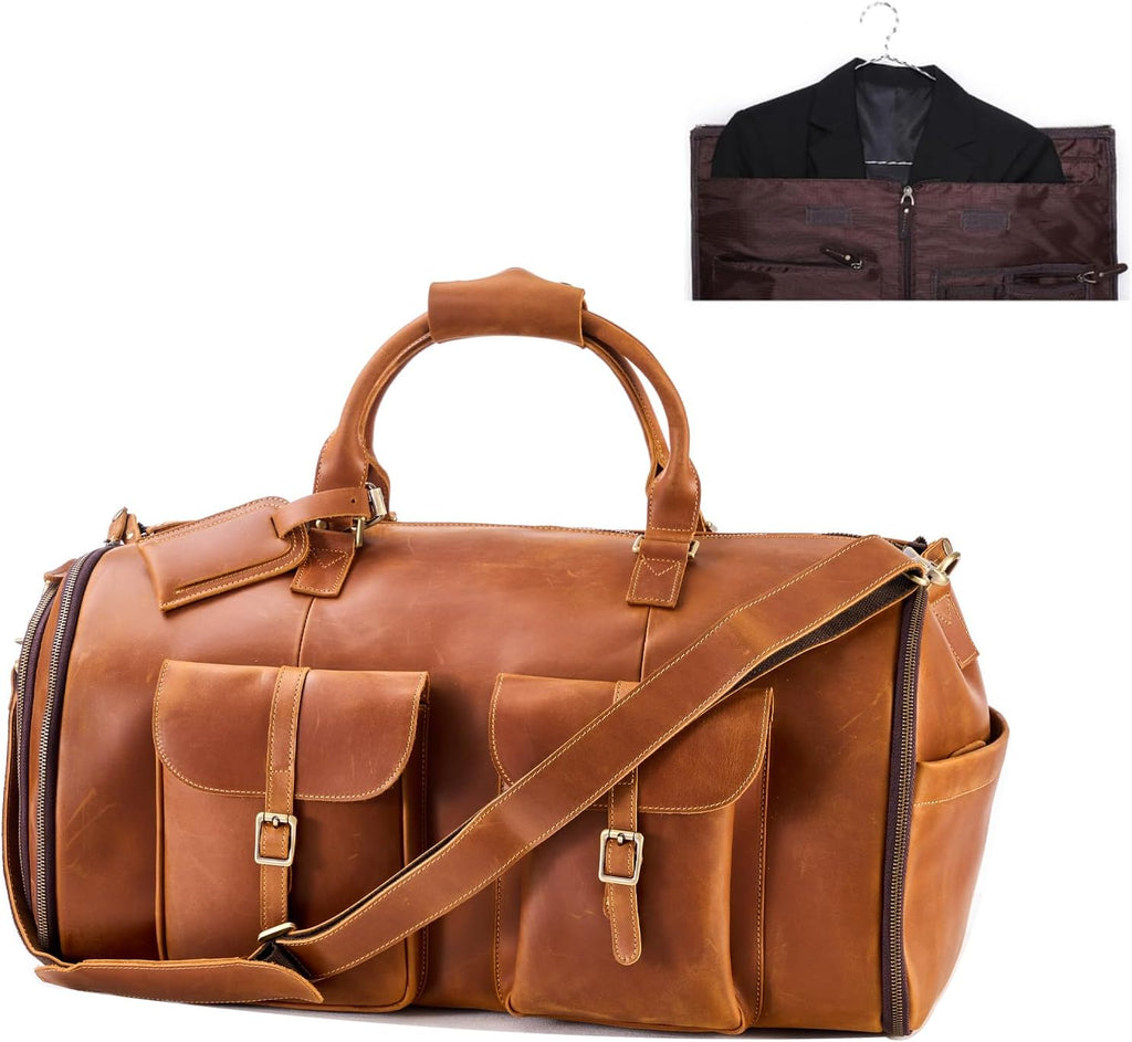 Full Grain Leather Suit Duffle Bag, Duffel Bag with Shoe Compartment