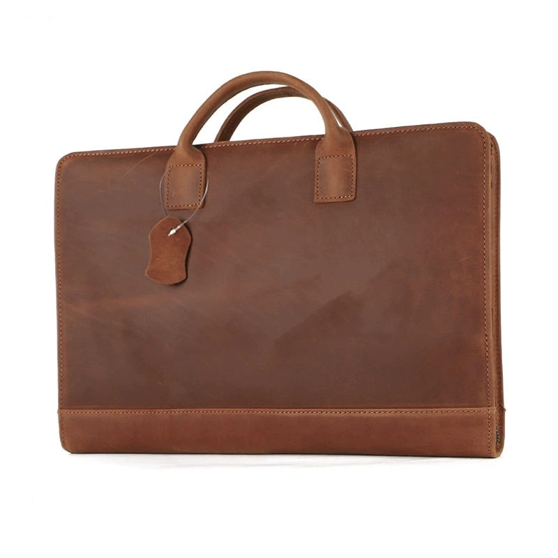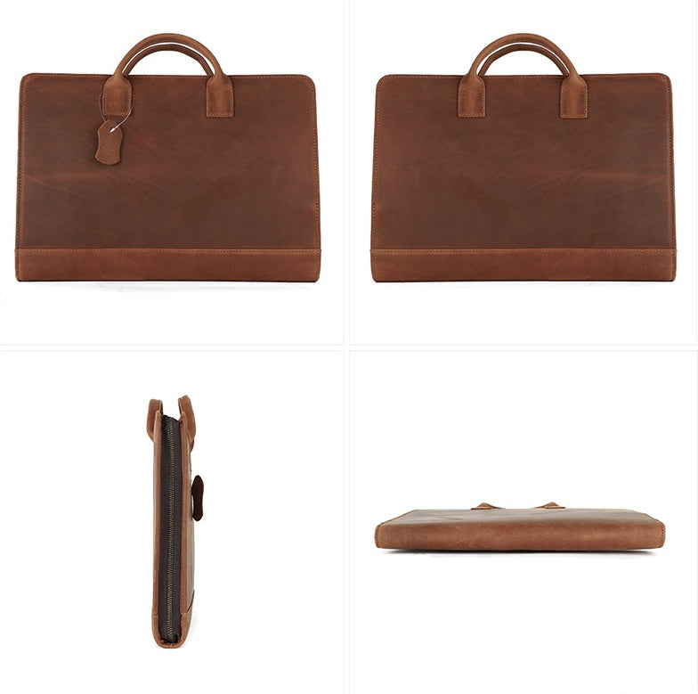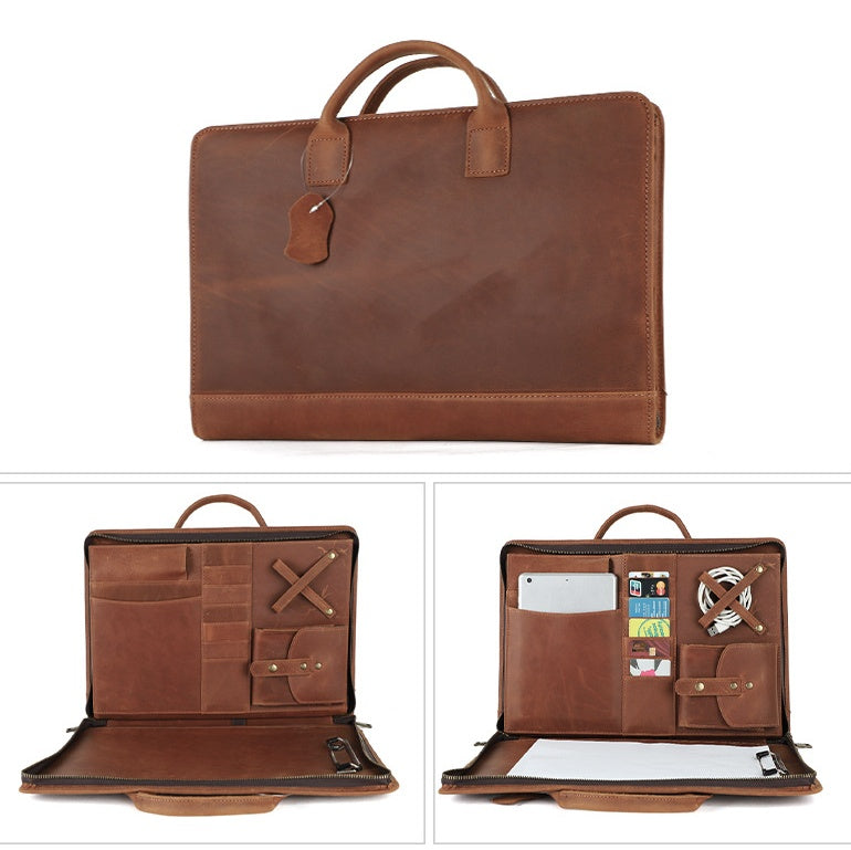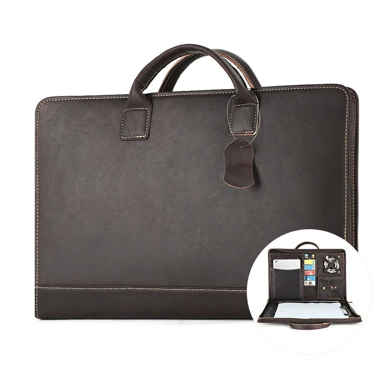 15.7" Leather Laptop Bag, Leather Portfolio Binder for Men