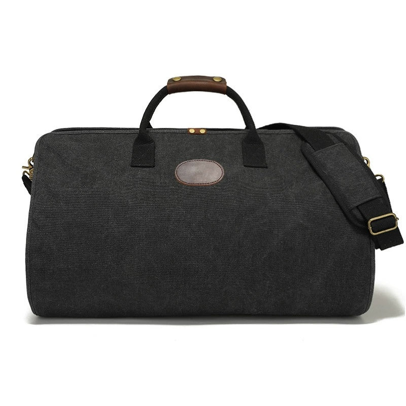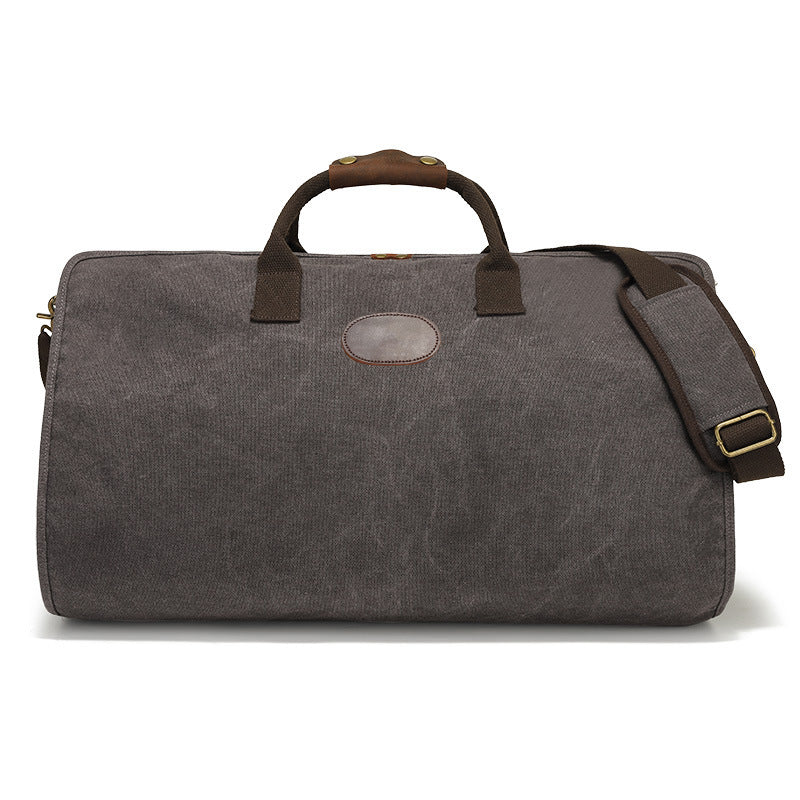 2 in 1 Canvas Leather Suit Luggage Garment Bag with Shoulder Strap