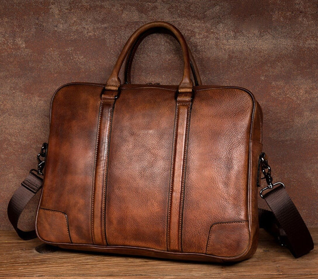 Handcrafted Full Grain Leather Briefcase Laptop Bag for Men